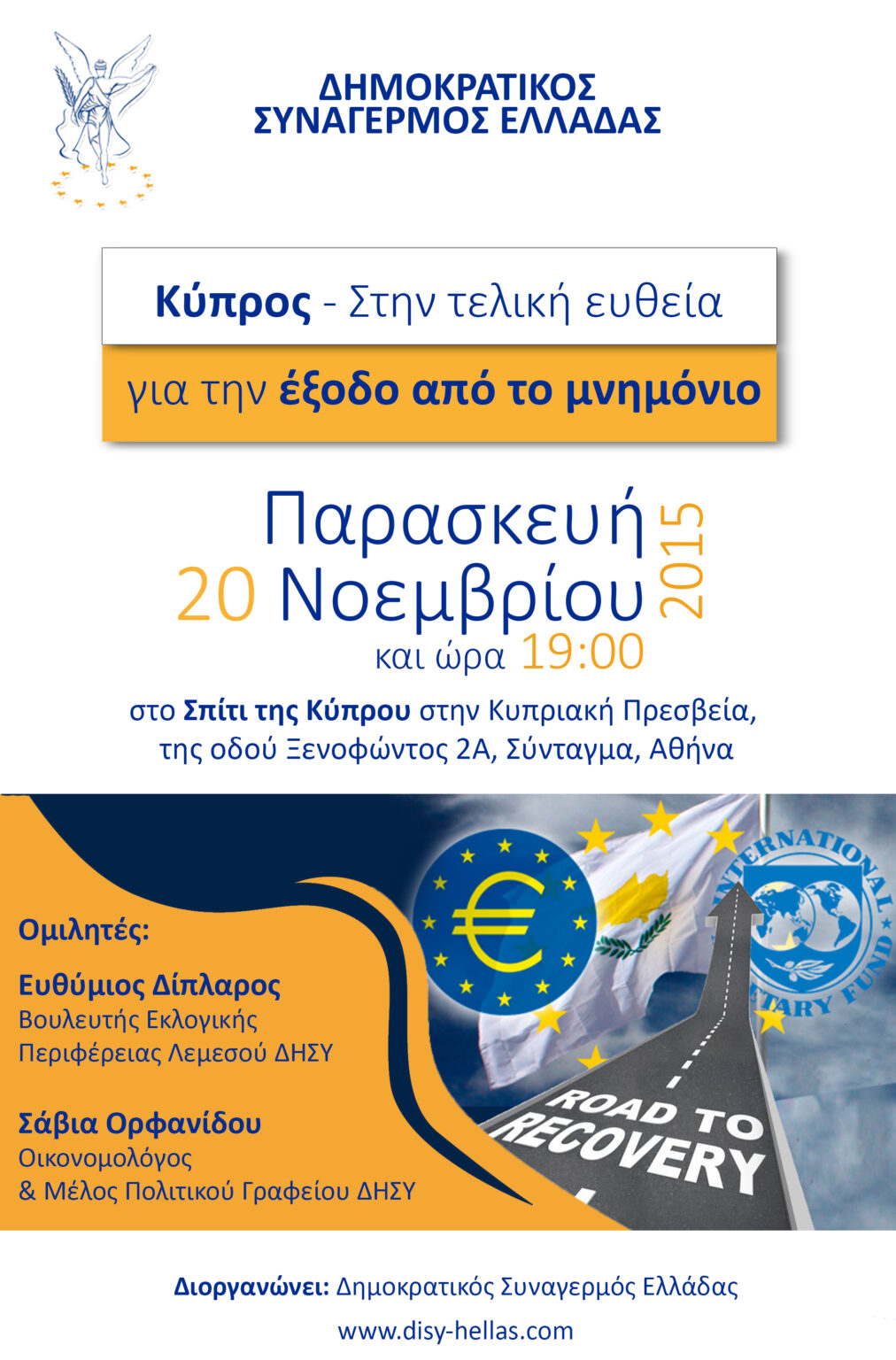 ΕΚΔΗΛΩΣΗ: «Κύπρος – Στην τελική ευθεία για την έξοδο από το μνημόνιο»